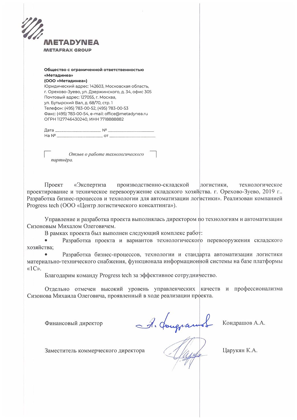 Технологическое перевооружение логистики для «Метафракс»